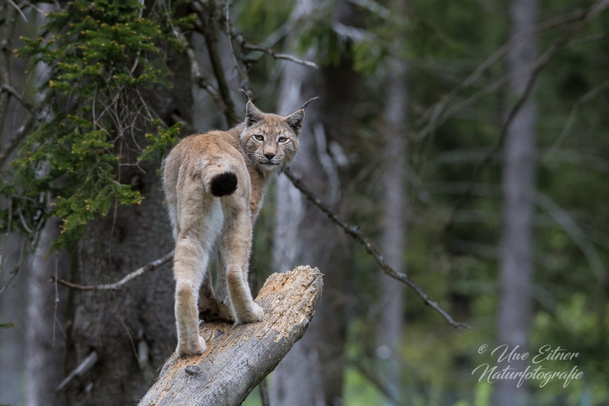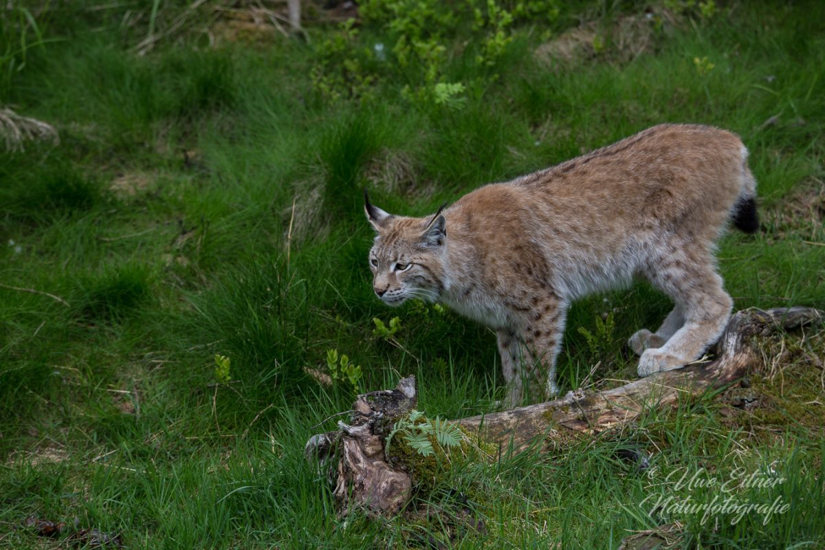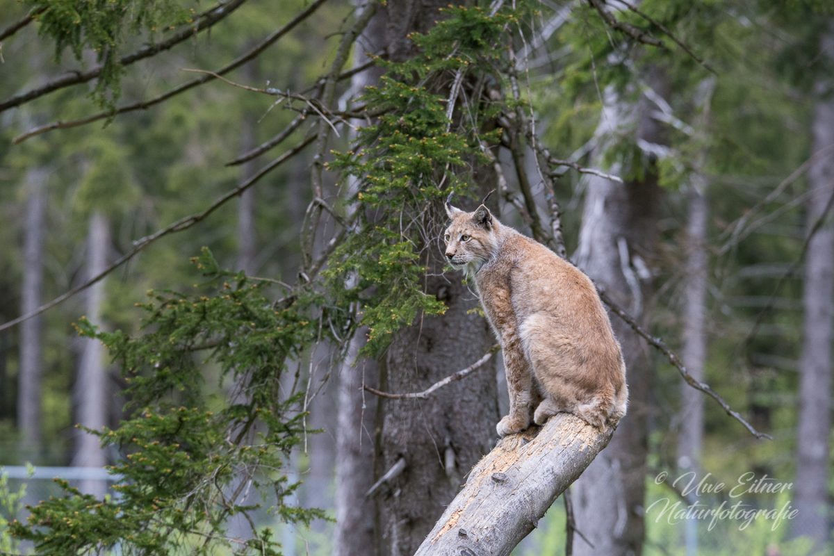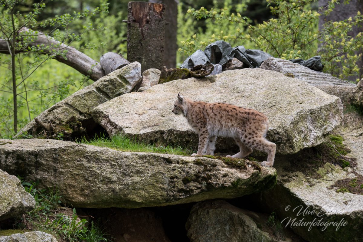 In der Gemeinde Mehlmeisel im Fichtelgebirge befindet sich der Wildpark Waldhaus. Dort kann man einheimische Tiere in weitestgehend natürlicher Umgebung beobachten. Das gelingt besonders gut durch einen Hochweg, der in ca. drei Meter Höhe über den Gehegen von Wildschweinen, Wildkatzen und Luchsen entlangführt und damit einen guten Blick auf die Gehege mit den Tieren eröffnet. Die Gehege sind sehr natürlich im Wald angelegt und bieten damit den Tieren vielfältige Verstecke, sodass trotzdem Geduld erforderlich war, um einige interessante Bilder zu machen. Mein besonders Interesse galt den Luchsen. Lange Zeit ließ sich keiner von ihnen blicken.