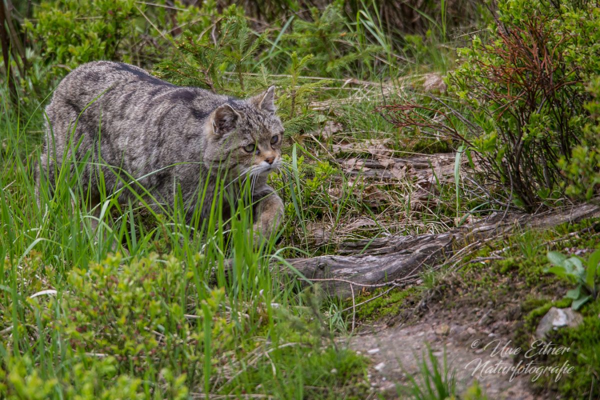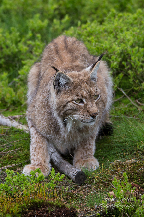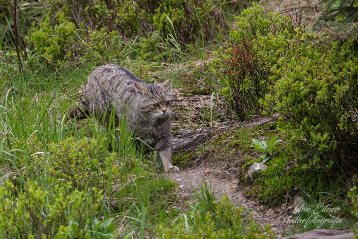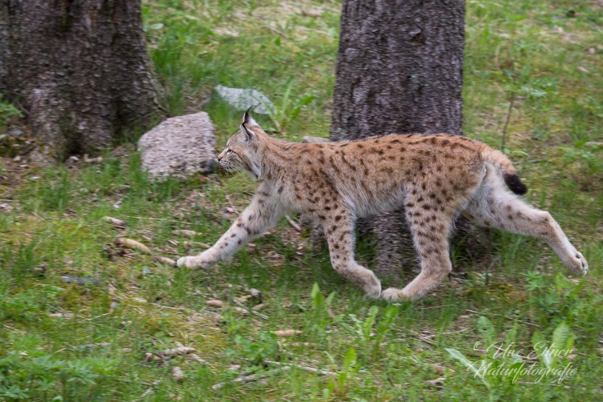 In der Gemeinde Mehlmeisel im Fichtelgebirge befindet sich der Wildpark Waldhaus. Dort kann man einheimische Tiere in weitestgehend natürlicher Umgebung beobachten. Das gelingt besonders gut durch einen Hochweg, der in ca. drei Meter Höhe über den Gehegen von Wildschweinen, Wildkatzen und Luchsen entlangführt und damit einen guten Blick auf die Gehege mit den Tieren eröffnet. Die Gehege sind sehr natürlich im Wald angelegt und bieten damit den Tieren vielfältige Verstecke, sodass trotzdem Geduld erforderlich war, um einige interessante Bilder zu machen. Mein besonders Interesse galt den Luchsen. Lange Zeit ließ sich keiner von ihnen blicken.