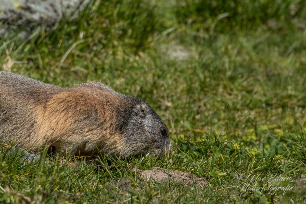 Eine unserer Wanderungen führte uns ins Timmeltal. Dabei begleiteten uns fortwährend die Rufe der Murmeltiere und einige von ihnen ließen sich in gebührendem Abstand auch sehen. Für die „Wanderkamera“ waren sie leider einfach zu weit weg, um vernünftige Fotos machen zu können.